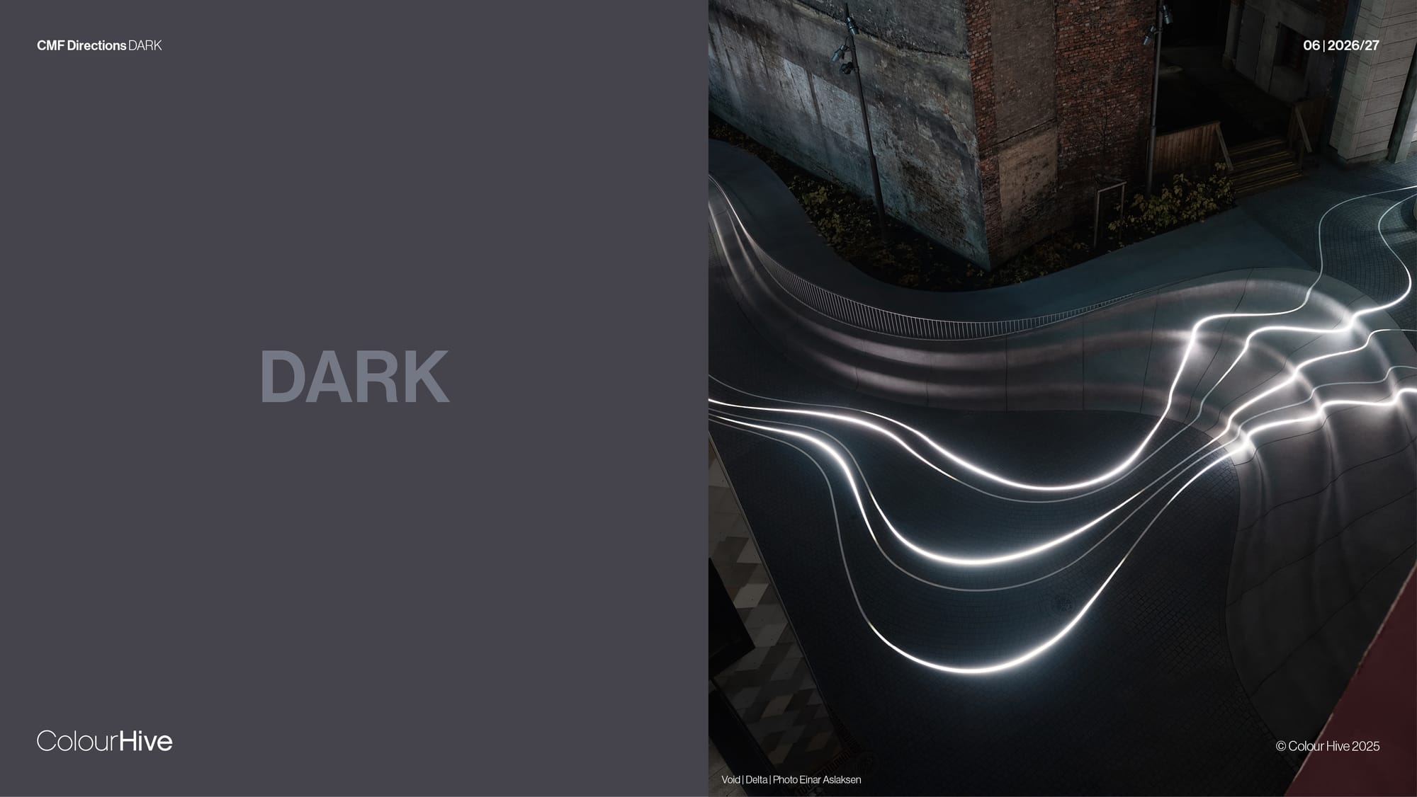 Fear of the unknown and subsequent lack of control is acknowledged and accepted. In this 27-page report, you’ll find the colour, material and finish forecast for the 2026/27 design direction DARK.